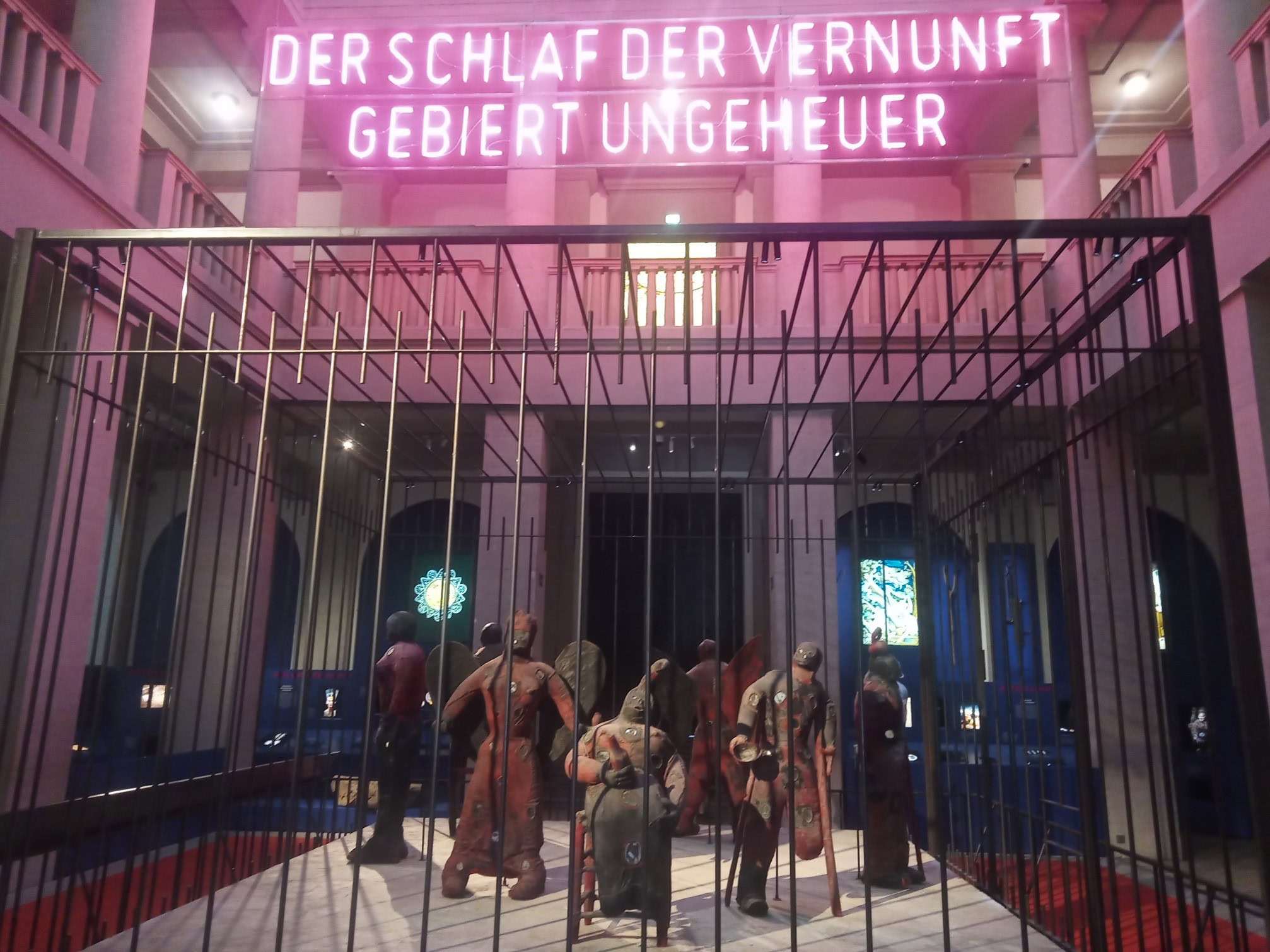 „Der Schlaf der Vernunft gebiert Ungeheuer“ heißt es auf der berühmten Radierung von Francisco de Goya. Der Künstler wird schlafend oder träumend und umgeben von unheimlich anmutenden Nachtwesen wie Eule, Luchs und Fledermaus gezeigt; und je nachdem, ob man die Deutung auf den „Schlaf“ oder den „Traum“ richtet, kann das Bild entweder als eine Kritik am Aberglauben oder aber als Ausdruck für Goyas Ringen mit seinen inneren Dämonen (respektive seiner Einbildungskraft) interpretiert werden. In der Ausstellung „Magie – Das Schicksal zwingen“ des Landesmuseums für Vorgeschichte in Halle/Saale steht eine Kopie der Radierung an letzter Stelle des Rundgangs, als eine „Auseinandersetzung zwischen magischem und rationalem Denken“. Zudem prangt der Spruch „Der Schlaf der Vernunft gebiert Ungeheuer“ als eine Art mahnendes und zugleich unheimliches Motto in großer Leuchtschrift über der Ausstellung.