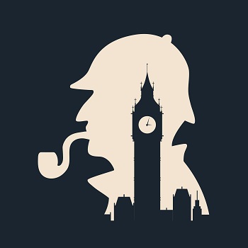 Sherlock holmes silhouette with Big Ben London. Vector illustration
