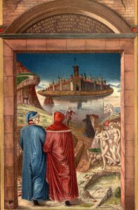 Historical illustration from the 19th Century, The Gate of Hell, purgatory and hell as an illustration after The Divine Comedy b