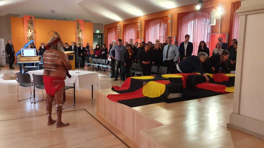 Auch davon ist am Leipziger Novemberabend sowie am Tag der offiziellen Rückführungszeremonie die Rede. Von Vergebung. Und Vergessen. Oder besser gesagt Nicht-Vergessen. Mich überkam dabei das Gefühl, mich entschuldigen zu müssen, wenn auch nur für die eigene Ignoranz. Wann liest oder hört man in Deutschland oder generell in Europa etwas über Australien? Gerade der kleinste und der zweitkleinste Kontinent der Erde scheinen weiter voneinander entfernt zu liegen als der Mond, den man ja mit dem bloßen Auge sehen kann. Natürlich hat es sich die Presse nicht nehmen lassen, über die Rückführung, die Zeremonie und den Austausch der Dokumente zu berichten. Sogar die australische Botschafterin ist dafür extra von Berlin nach Leipzig angereist. Und nach dem sogenannten „Smoking“, dem Verbrennen verschiedener Pflanzen und Hölzer wie Eukalyptus und Birke, um Ahnen und Anwesende von negativen Energien und Geistern zu reinigen, nach den Gesängen, den warmen Worten und der Übergabe der offiziellen Zertifikate (denn nichts ist für den Europäer so bindend wie eine Unterschrift), hat sich das „to take them home“ endlich realisiert. Zumindest für dieses Jahr. Denn die bisherigen Rückführungen, in die sehr viel Recherche, Hartnäckigkeit und Durchhaltevermögen eingeflossen sind, sind nur ein kleiner Teil einer langen Reihe in Kisten gebrachten Unrechts. Man darf hoffen, dass sich die übrigen ebenso zügig und vor allem bürokratielos realisieren lassen.