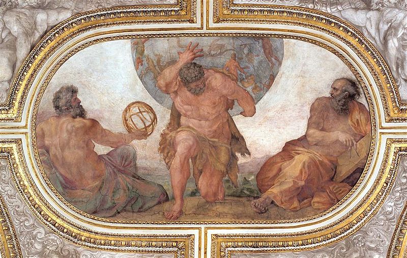 Das Deckengemälde Herkules am Scheideweg in der Mitte des Camerino wird ergänzend flankiert von zwei weiteren Episoden aus dem Leben des Helden: Der Ruhende Herkules zeigt diesen von den Ungeheuern umgeben, die er niedergerungen hat, während Herkules beim Tragen des Erdballs auf eine populäre Deutung der Begegnung von Herkules und Atlas hinweist. Letzterer war hier ein Sternkundiger, der den Halbgott in der Himmelswissenschaft unterwies. In diesen beiden Darstellungen sehen wir beide Varianten, ein sinnhaftes Dasein zu gestalten – kontemplativ (Ruhe) und tätig (den Globus schulternd). Das Thema der Bilder zielt somit darauf ab, Kardinal Odoardo zu würdigen, der als „neuer Herkules“ dargestellt wird, der den Weg der Tugend wählt und ihn sowohl in seiner aktiven und kontemplativen Form praktiziert.