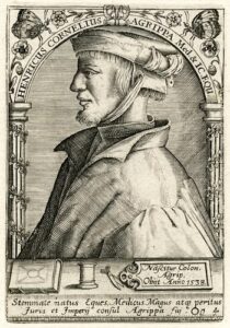 Henricus Cornelius Agrippa Med. & IC. EQU. Stemmate natus Eques, Medicus Magus atqy peritus Furis et Imperij. consul Agrippa fuj. 1538 engraving of Heinrich Cornelius Agrippa (1486-1535) German occultist and author of Three Books Concerning Occult Philoso