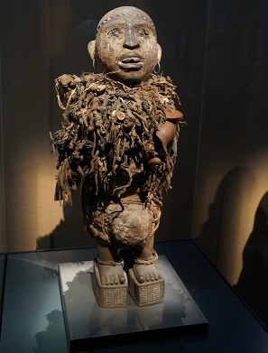 Die Reise beginnt mit einer Konfrontation der Blicke. Sie kommen von der Elfenbeinküste, aus Indonesien, Papua-Neuguinea, dem Kongo, den Osterinseln, aus Nigeria, China oder Neuseeland. Sie bestehen aus Holz oder Geflecht. Sie sind Wächter, waren Teil der Mittelpfosten von Häusern oder sind einfach „nur“ Figuren, die schmückende Funktion, rituelle oder magische Bedeutung besessen haben (und vielleicht noch besitzen). Ein schönes Beispiel sind die Minkisi-Skulpturen, denen das Leipziger Völkerkundemuseum, welches eine der weltweit umfangreichsten Sammlungen (Sammlung Robert Visser) dieser Figuren besitzt, 2012/2013 erstmals eine Ausstellung widmete. Zu Unrecht galten die Figuren unter den europäischen Kolonialherren als bloße Fetische oder gar Objekte für schwarze Magie. Im ehemaligen Loango-Reich, heute Teil der Republik Kongo, kam ihnen in Ritus und Verehrung eine große Bedeutung zu. Die Minkisis, die u.a. mit Nägel, Glasscherben oder anderen Gegenständen gespickt sind und meist zusätzlich einen verschlossenen Behälter besitzen, in dem sich Federn, Knochen, Muscheln etc. befinden können, waren Glücksbringer und Kraftfiguren. Sie versprachen Schutz, Heilung und Reichtum. Darüber hinaus spielten sie eine wichtige Rolle im Ahnenkult. Hatten sie ihren Zweck erfüllt, wurden sie häufig auch entsorgt.
