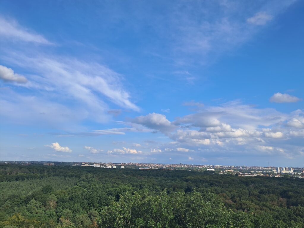 Nach meinem ungeplanten Abstecher Querfeldein habe ich (nach einem Untergrund bestehend aus Erde und Sand) im wahrsten Sinne des Wortes wieder festen Boden unter den Füßen. Auf zum Kolkturmberg, der bereits erwähnten höchsten Heideerhebung. Vom Aussichtsturm hat man bei gutem Wetter einen wunderbaren Rundblick über Halle und Umgebung.