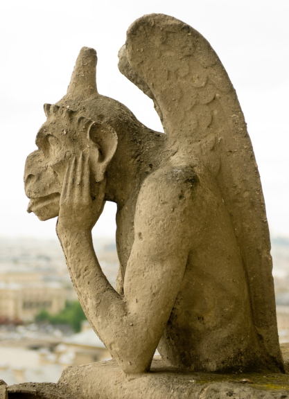 Wie ich bereits erwähnte, bin ich eine steinerne Kreatur. Und genau dies ist das große Dilemma meines ewig währenden Daseins. Wie angewurzelt sitze ich hier auf einem Fries der gotischen Kathedrale Notre-Dame, hoch oben über den Dächern der Stadt Paris. Die ersten Jahrhunderte war mir mein Wohnsitz ganz angenehm, damals passierte noch etwas. Man wurde mit öffentlichen Hinrichtungen unterhalten, gelegentlich brach ein Feuer aus, und die Pest raffte Tausende dahin. Das waren noch Zeiten.