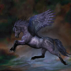 Ich bin das berühmteste Pferd der griechischen Mythologie, unschuldig weiß, mit kräftigen Flügeln ausgestattet, und ein Kind unglücklicher Leidenschaft. Meine Mutter war Medusa, die sterbliche Gorgone, die mit Poseidon eine Affäre hatte. Dieser war nicht nur als Gott des Meeres bekannt, sondern auch Gott der Pferde. Das sieht man heute vor allem an Objekten der bildenden Kunst. Manchmal wird sein Streitwagen von Delfinen, oft genug aber von Hippokampen, Meerespferden mit Schuppen und Fischschwänzen, gezogen.