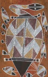 Long-neck-Turtle-NGalmangiyi-with-water-lily-by-Bruce-Nabegeyo-Djalama-Clan-e1583085222412