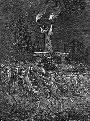 Es ist tiefe Nacht. Lautlos wiegen sich die schemenhaften Gestalten von Bäumen und Büschen im Wind, matt beleuchtet vom Mondlicht. Doch plötzlich – ein Rauschen, die Luft erfüllt von Lachen, Schreien und wilden Gesängen. Auf Besen, Mistgabeln und Böcken kommen sie geflogen, um in der Nacht vor dem Tag der heiligen Walburga ihr ausschweifendes und gottloses Treiben abzuhalten: Hexen. Männer und Frauen, manche halbnackt, mit glänzenden Augen und vom Wind zerzausten Haaren. Zuerst sind es nur ein paar, doch rasch werden es immer mehr. Ein großes Feuer lodert auf der Lichtung des Berggipfels auf, Schatten tanzen im flackernden Licht der Flammen zu wilder Musik.
