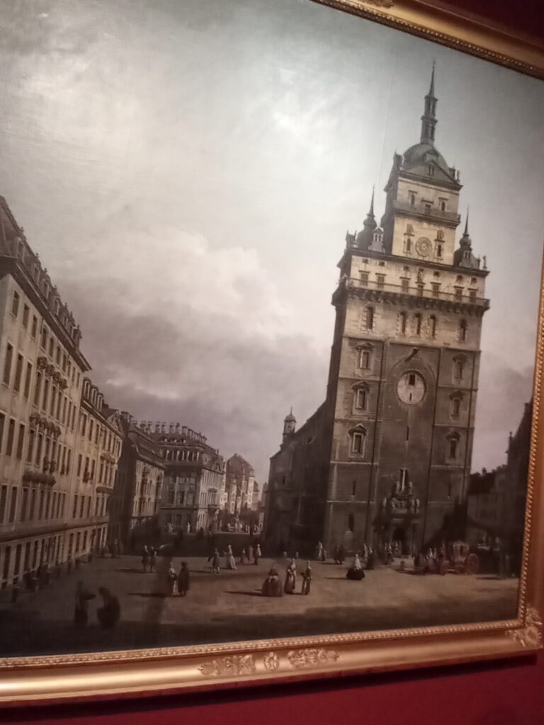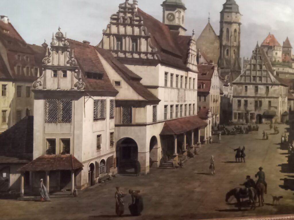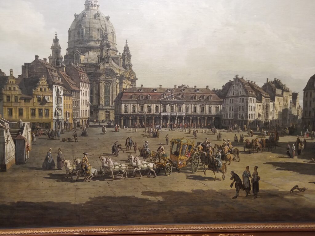 Vielleicht sind es die Details, die es verstehen, den Betrachter in Bann zu ziehen: das Mädchen, das seine Handfläche stoisch, fast schon schicksalsergeben, zwei Frauen entgegenstreckt, um ein Geldstück zu erbetteln, Kirchenbesucher, die nach Ende des Gottesdienstes aus dem Eingangsdunkel der im Renaissancestil zwischen 1579 bis 1584 umgebauten Dresdner Kreuzkirche streben oder aber die dunkelbraunen Lasuren der Hausziegel, die dem Gebäude gleichermaßen das Aussehen von Erhabenheit und Verfall verleihen. Es scheint fast, als würde man beim Betrachten Teil der Szenen werden – eine Zeitreise der Gedanken ins Europa des 18. Jahrhunderts. „Zauber des Realen“ – der einleitende Titel zur Ausstellung „Bernardo Bellotto am Sächsischen Hof“ in der Gemäldegalerie Alte Meister des Dresdner Zwingers ist passend gewählt. Aus Amsterdam, Dublin, Hamburg, London, Los Angeles, Stockholm, Warschau etc. und natürlich aus Dresden kommen die ausgestellten Objekte. Der Zauber ist international, so kosmopolitisch wie der Künstler, dessen 300. Geburtstag man im Jahr 2022 begeht, für seine Zeit selbst.