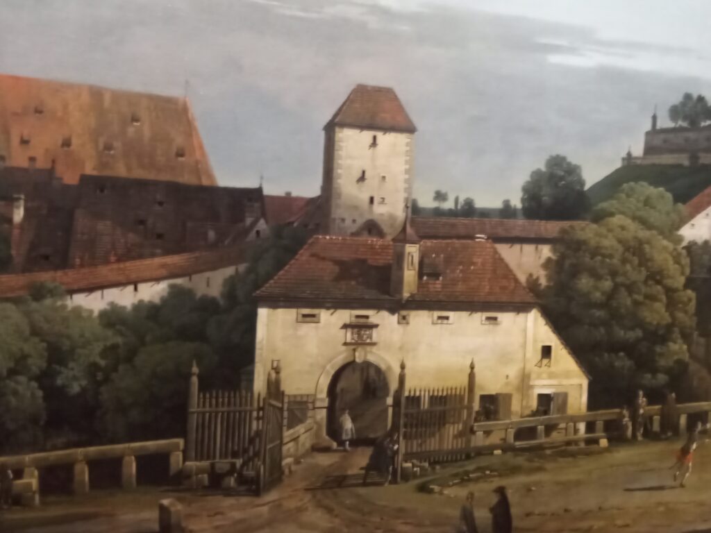 Bernardo Francesco Paolo Ernesto Bellotto wurde am 20. Mai 1722 in Venedig geboren. Sein Vater, Lorenzo Antonio, war Gutsverwalter, seine Mutter Fiorenza Domenica die Tochter des Theatermalers Bernardo Canal und Schwester des Verduten- und Landschaftsmalers Giovanni Antonio Canal (1697-1768). Letzterer nannte sich Canaletto, ein Künstlername, den später auch Bernardo Bellotto führte und der seit dem Mittelalter ein häufig wiederkehrender Beiname der Familie Canal war. Früh offenbarte sich das Talent des Jungen, der als Lehrling in der Werkstatt des Onkels lernte, seine ersten Erfahrungen sammelte und von dort aus begann, seine sozialen und künstlerischen Netzwerke zu knüpfen. Eben diese Netzwerke, vor allem aber die wirtschaftlichen Aspekte, führten dazu, dass er Venedig verließ. Im Jahr 1747 kam Bellotto nach Dresden, an einen Hof, der dank der Förderung durch August den Starken und dessen gleichnamigen Sohn August II. (beide sowohl Kurfürsten von Sachsen als auch Könige von Polen) kulturell florierte und zum Anziehungspunkt „für Kulturschaffende unterschiedlicher Nationalitäten [wurde] – Architektur, Bildhauerei, Malerei, Oper, Literatur und Festivitäten bildeten den Rahmen einer prachtvollen Hofhaltung, die sich mit anderne europäischen Fürstenhöfen und Königshäusern messen konnte“. (Iris Yvonne Wagner, Dem Adel verpflichtet, in: Zauber des Realen, S. 22)