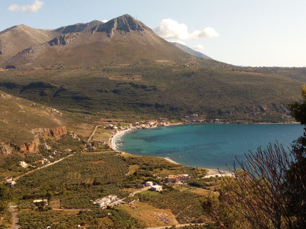 Am Vortag waren wir – ein Bus hatte irgendwann auf dem Dorfplatz von Lagatha gestanden, war als Deus ex Machina aus dem Nichts erschienen, um unser stoisches Warten zu belohnen – bis nach Idylo gefahren. Aus unerfindlichen Gründen hatte die Fahrt hier geendet. Vielleicht, weil wir die einzigen Fahrgäste gewesen waren und der Busfahrer es für angemessen gehalten hatte, dass wir die endlosen Serpentinen hinunter in die Bucht zu Fuß zurücklegten. Vielleicht, weil er selbst das großartige Panorama betrachten wollte, vielleicht aber auch, weil am südlichen Ende der Bucht mit Limani bereits die Grenze zur Inneren Mani lag. Auf diesem jenseitigen Rand der Bucht – hoch oben am Berghang – waren Häuser zu sehen gewesen, die bereits jene von Areopoli sein mussten. Das Tor zur Inneren Mani lag vor uns. Dazwischen, auf einer Anhöhe über der Bucht und nahe bei Idylo, waren die Überreste eines großen Kastells zu erkennen: hier hatte sich die von den Türken erbaute Festung Kelefa befunden. Von diesem strategischen Punkt ließ sich theoretisch die gesamte Bucht beherrschen. In der Praxis der Auseinandersetzungen mit den widerborstigen Manioten blieb es allerdings beim erfolglosen Versuch. Die Mani blieb eines der wenigen griechischen Gebiete, die von den Osmanen niemals vollständig unterworfen werden konnten. Viel ist von der gewaltigen Anlage nicht übrig geblieben. Ein riesiges Mauergeviert und die Überreste von Ecktürmen sind noch erkennbar.