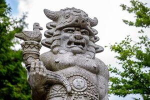Pustevny, Czech Republic. 19th June, 2021. The statue of Radegast, an old god of Slavic mythology, is seen on June 19, 2021, on the Radhost mountain, Moravian-Silesian Beskids, Czech Republic. Credit: Vladimir Prycek/CTK Photo/Alamy Live News